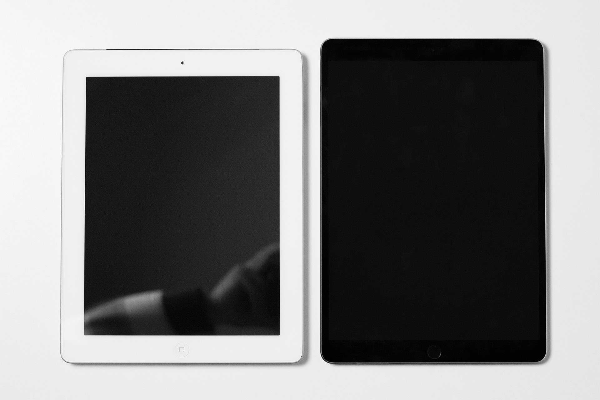Слева стоит предыдущий iPad Pro, справа – новый 12,9-дюймовый iPad Pro.
