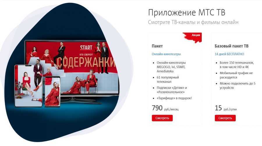 - МТС ТВ Лайт — 150 руб/мес.;