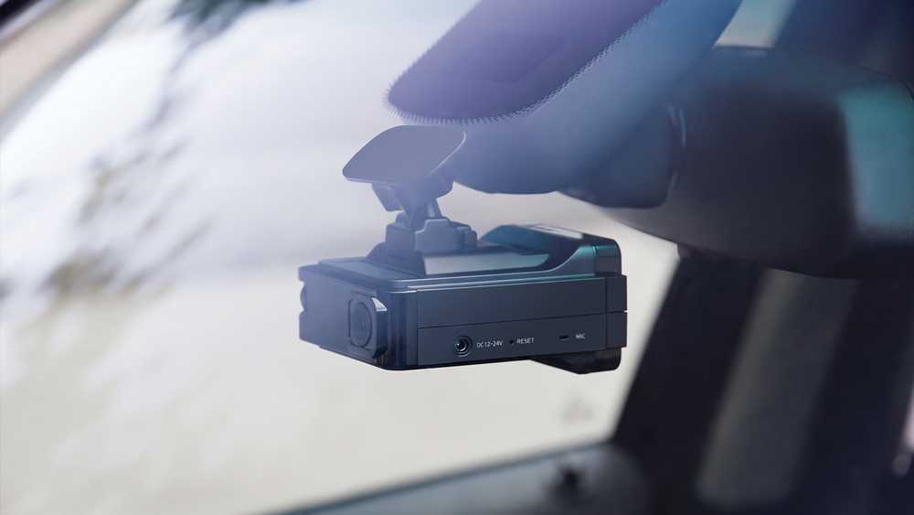 На фронтальной части установлен «глаз» радар-детектора и объектив камеры видеорегистратора.