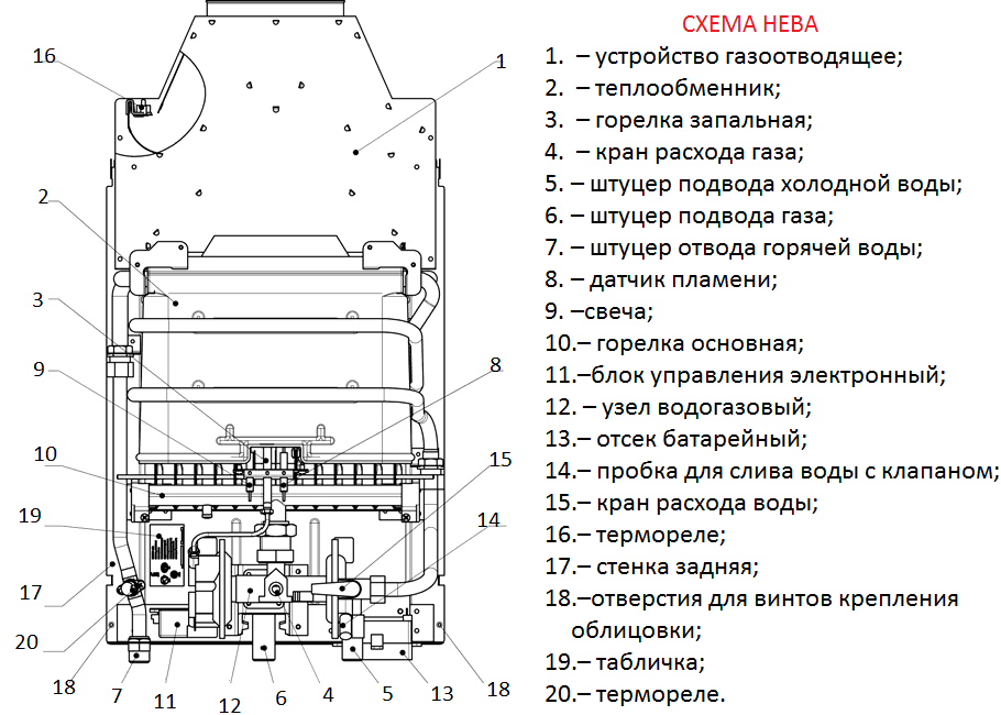 Основа безопасности газового оборудования — продуманная система защиты от аварийных ситуаций. Производитель оснастил все модификации газовых водонагревателей Neva датчиками, контролирующими работу аппарата и обеспечивающими его безопасную эксплуатацию. Защиту обеспечивают такие элементы:
