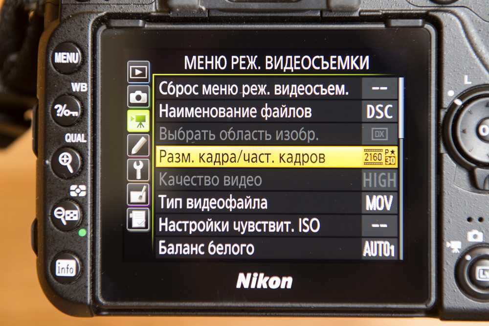 Все видеонастройки вынесены в отдельное меню, начиная от размера и качества картинки, заканчивая настройками микрофона, звука и цейтраферной съёмки. D7500 имеет два встроенных микрофона, которые располагаются на лицевой панели слева и справа от блока вспышки, и записывает звук на два канала. Но надо понимать, что это всё-таки встроенный микрофон; для профессиональных целей лучше использовать внешние модели.