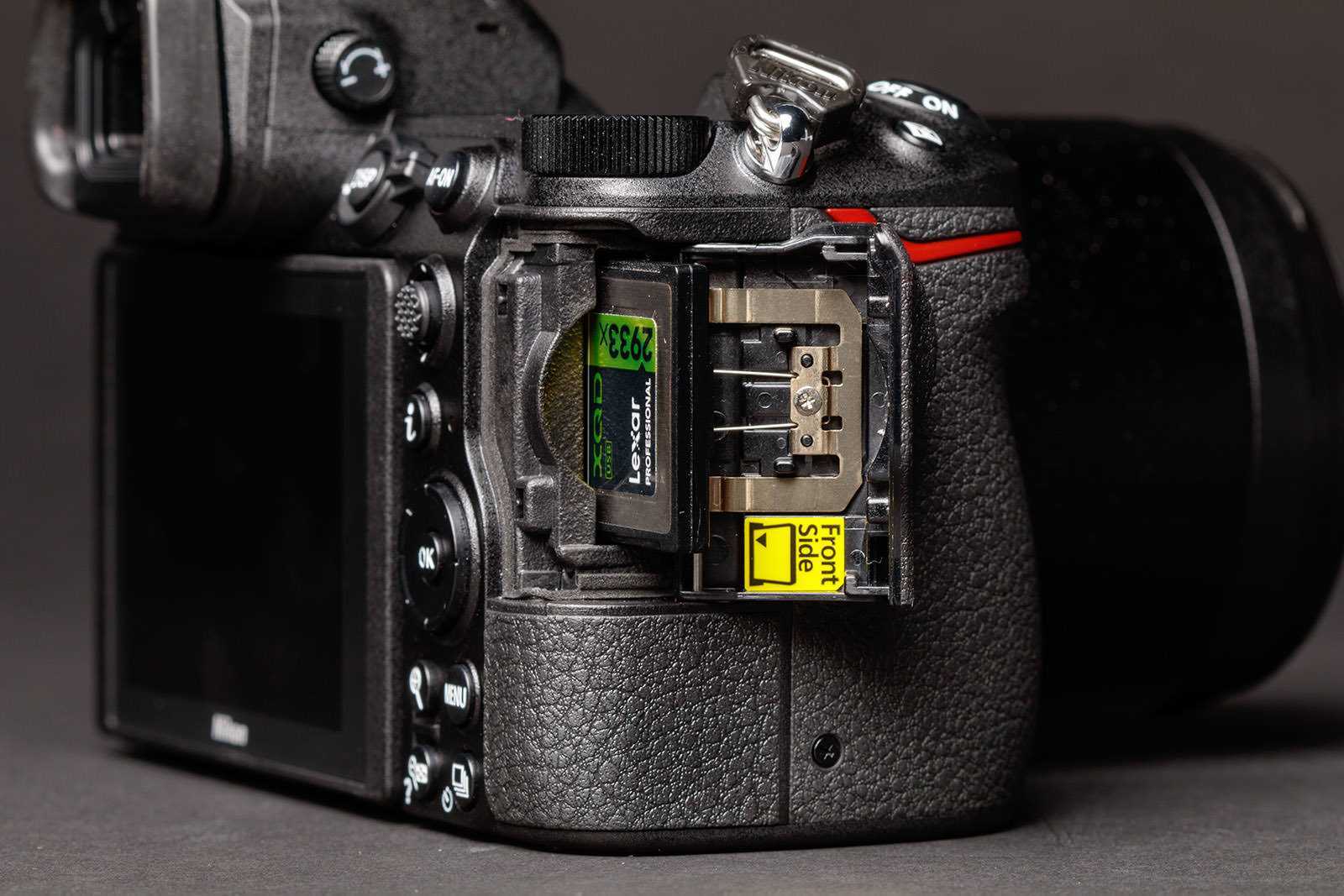 Несмотря на то, что в ближайшем будущем могут появиться высокоскоростные карты памяти формата SD, Nikon решила сосредоточиться на формате XQD. Z 7 является первой камерой компании, которая использует только один формат карт XQD. И при этом имеется только один слот для карт памяти.
