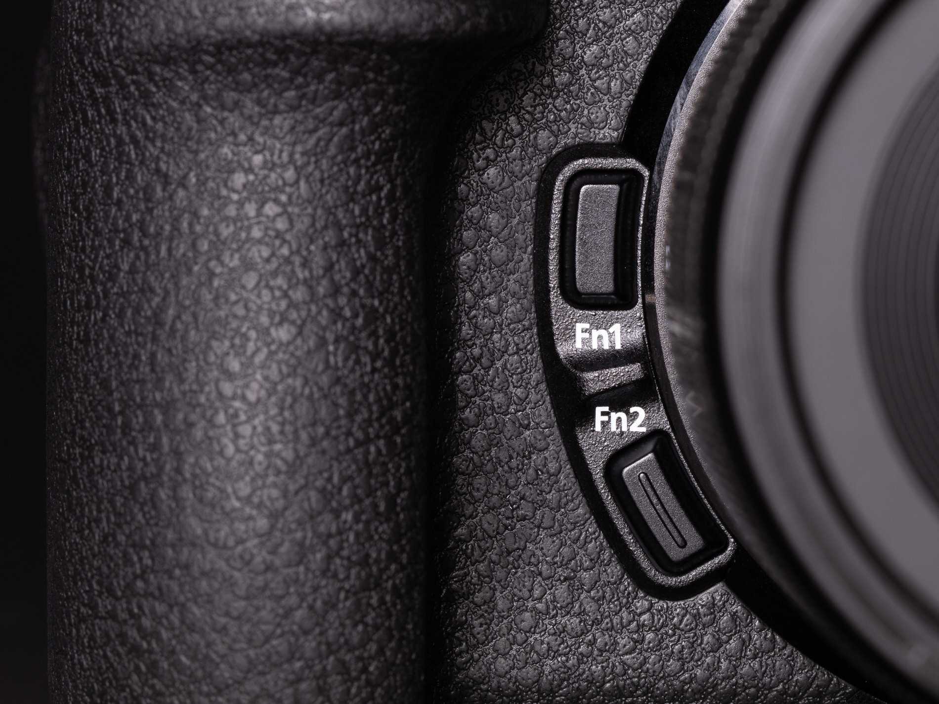Две основные кнопки Fn расположены между оправой объектива и захватом. Они могут быть использованы для ряда функций, либо временно применять действие пока нажаты в сочетании с дисками управления, чтобы пролистать доступные варианты каких-либо функций.
