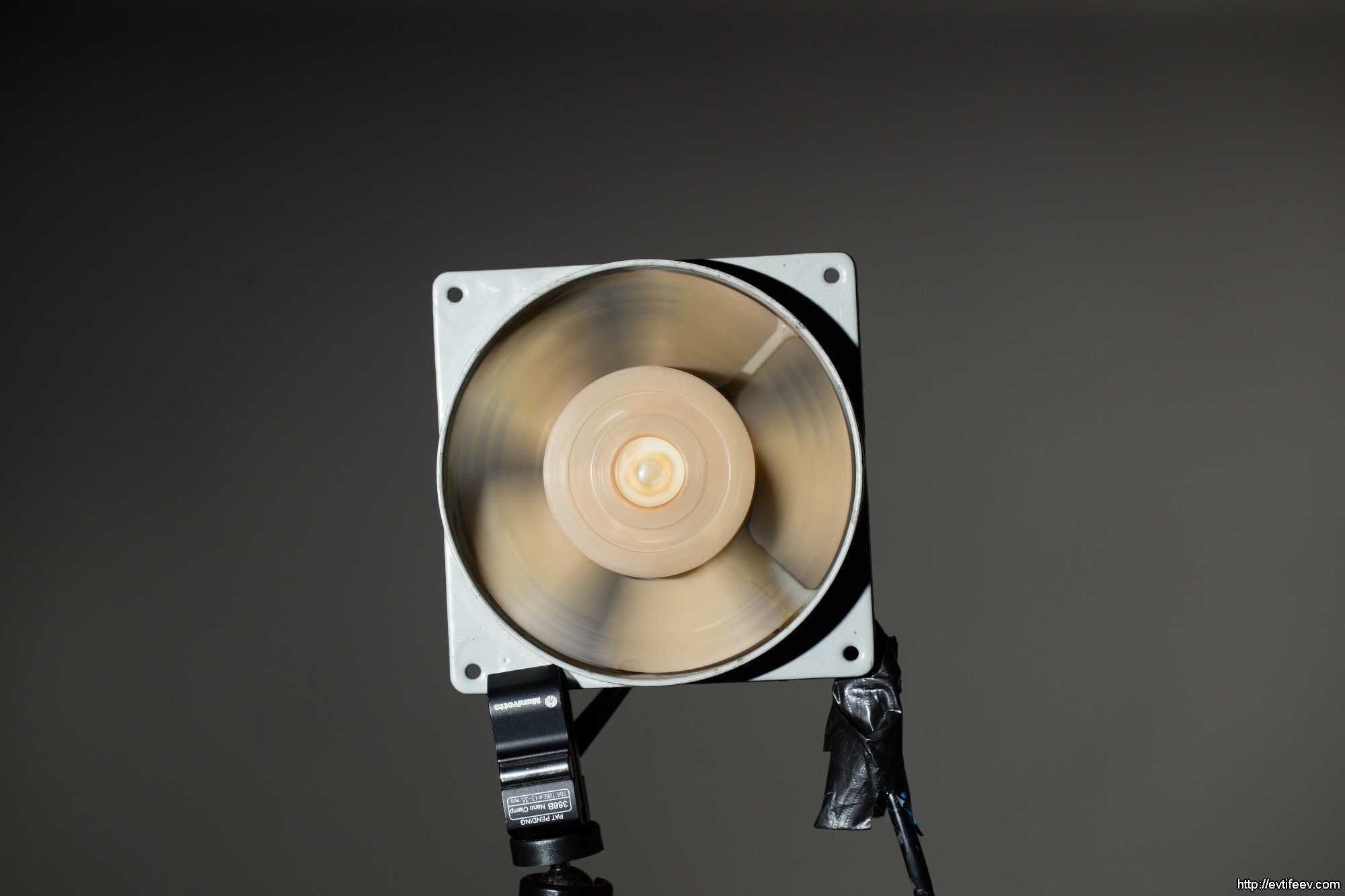 Данный тест показывает возможность «заморозки» движения в кадре. Как правило, на полной мощности импульс у вспышки довольно длинный, а при уменьшении мощности он укорачивается. Для проверки возможностей вспышек я взял промышленный вентилятор, которым я тестирую все вспышки и сделал снимок на максимуме и минимуме мощности.
