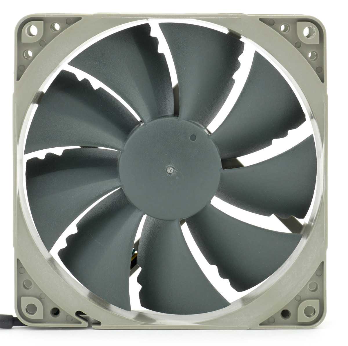 При минимальной нагрузке, работая со скоростью ниже 260-290 RPM, даже эти, созданные для промышленного применения модели, ведут себя совершенно бесшумно, но если сравнивать с более дорогими аналогами, такими как NF-A12x25, то на скоростях выше 1000 RPM, промышленный NF-F12 проигрывает и по уровню шума и по уровню вибрации.