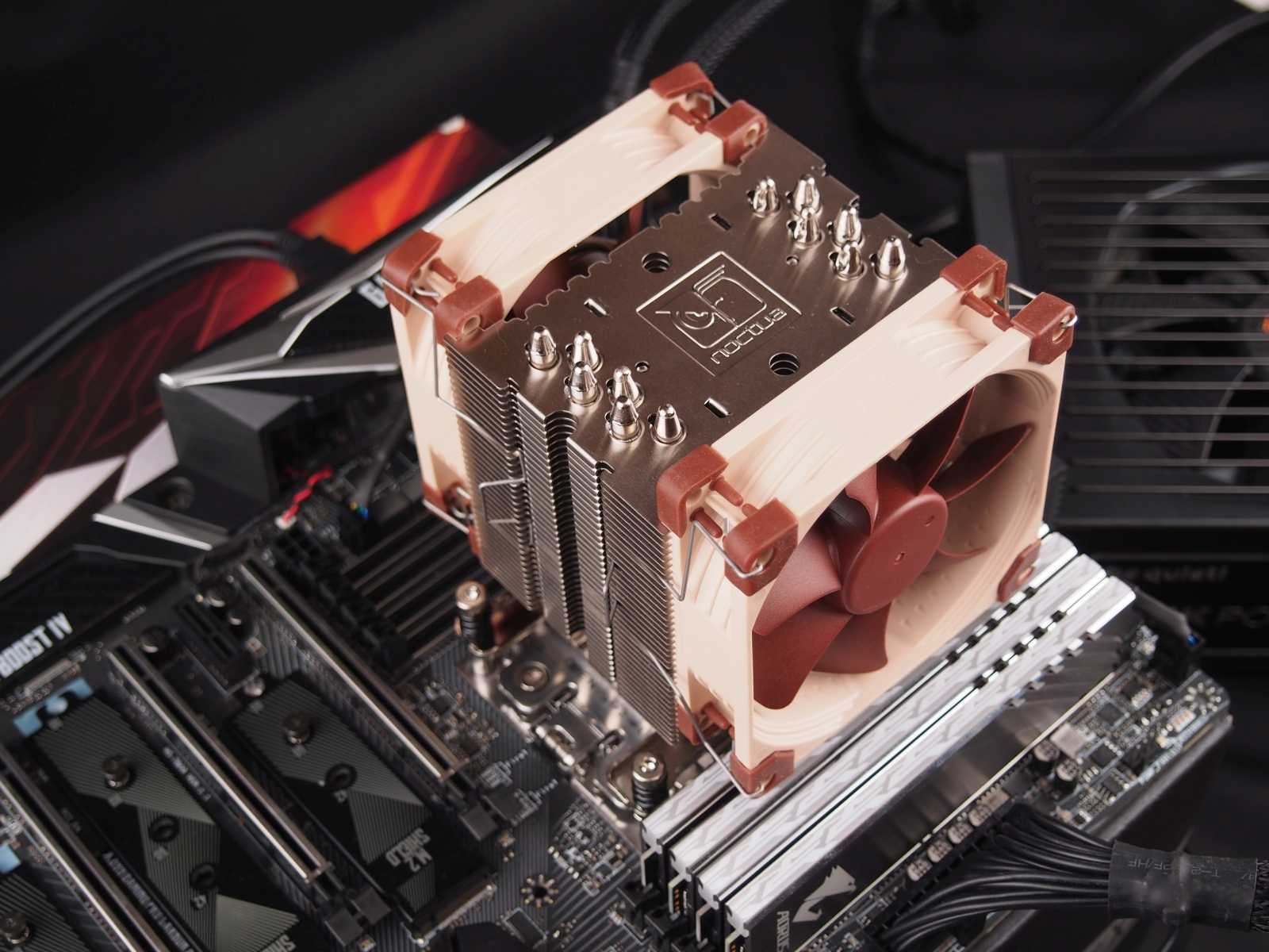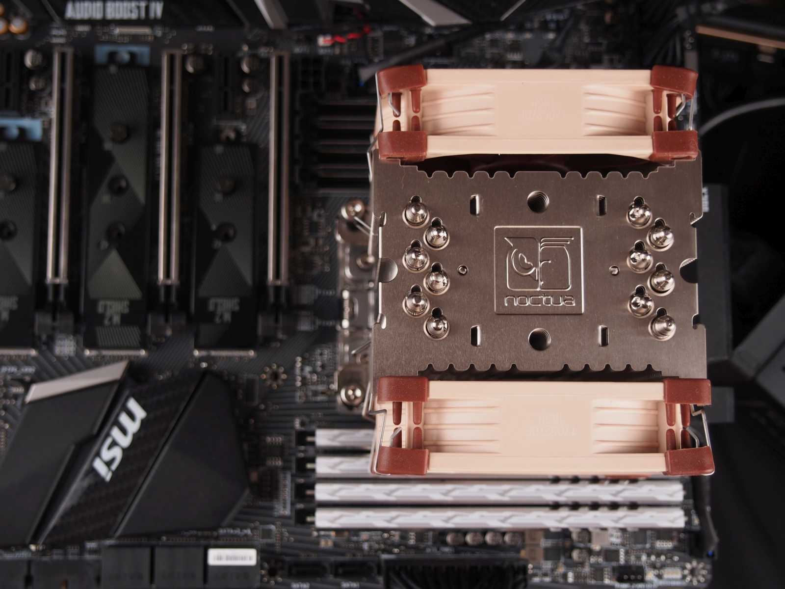 Установленный на материнскую плату кулер NH-U9 TR4-SP3 смотрится весьма компактно и гармонично. Лишь наличие двух вентиляторов визуально немного «раздувают» его габариты.