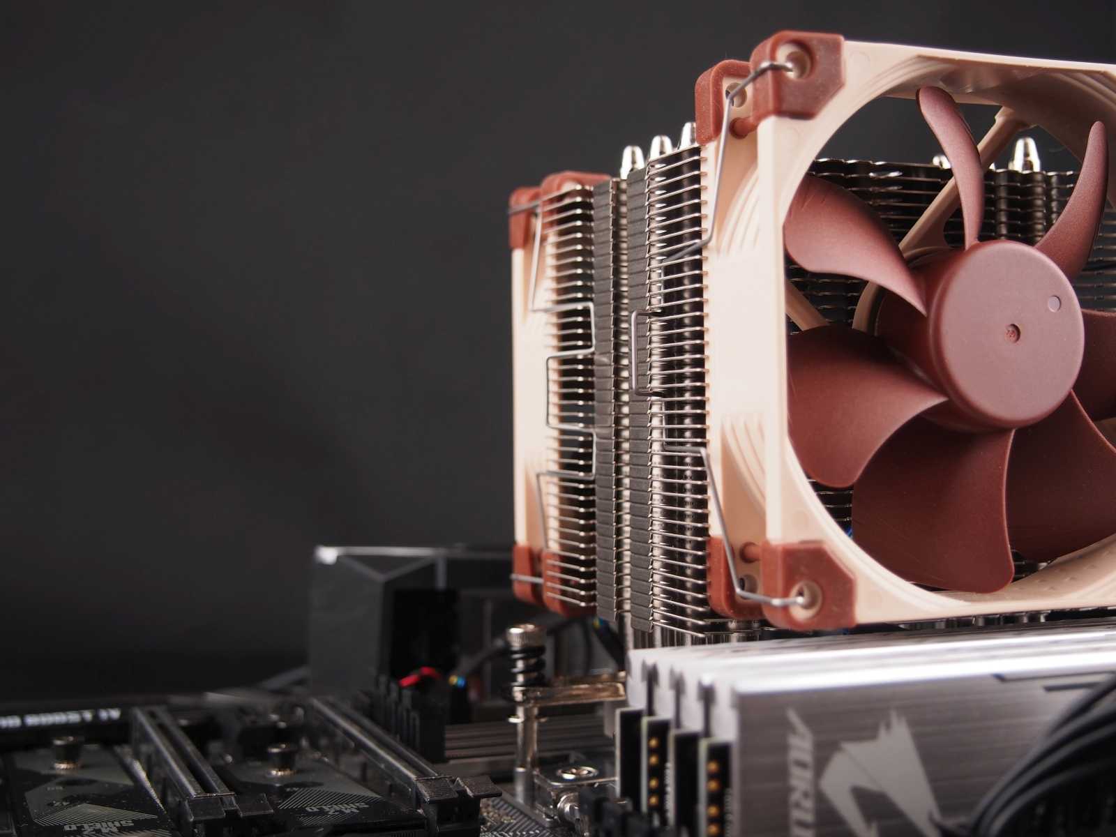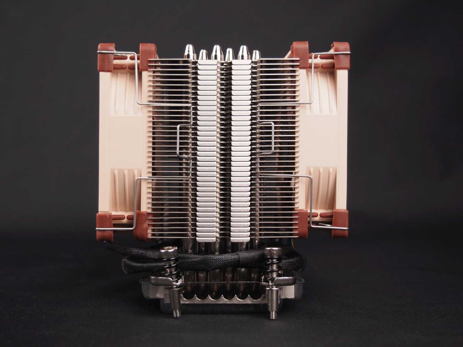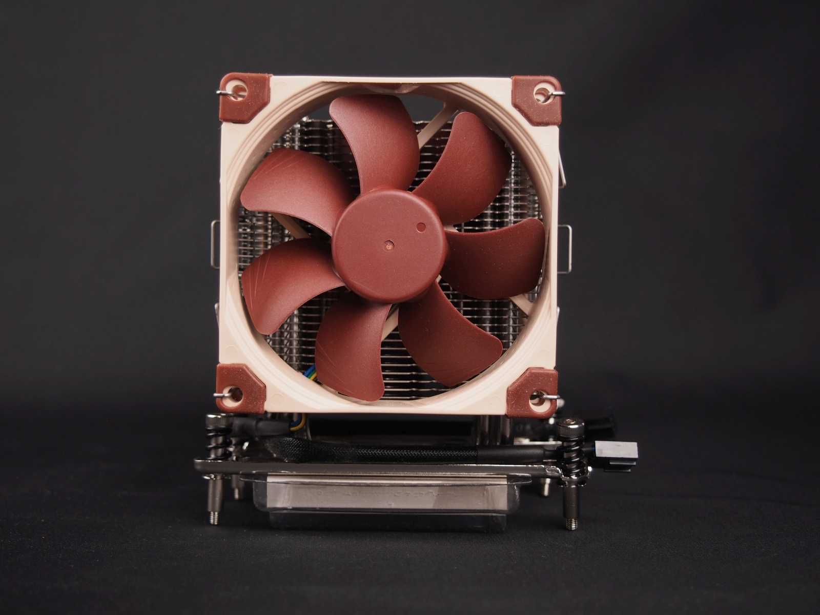 На кулер NH-U9 TR4-SP3 установлено два вентилятора NF-A9, которые закреплены к телу радиатора с помощью металлических скоб.