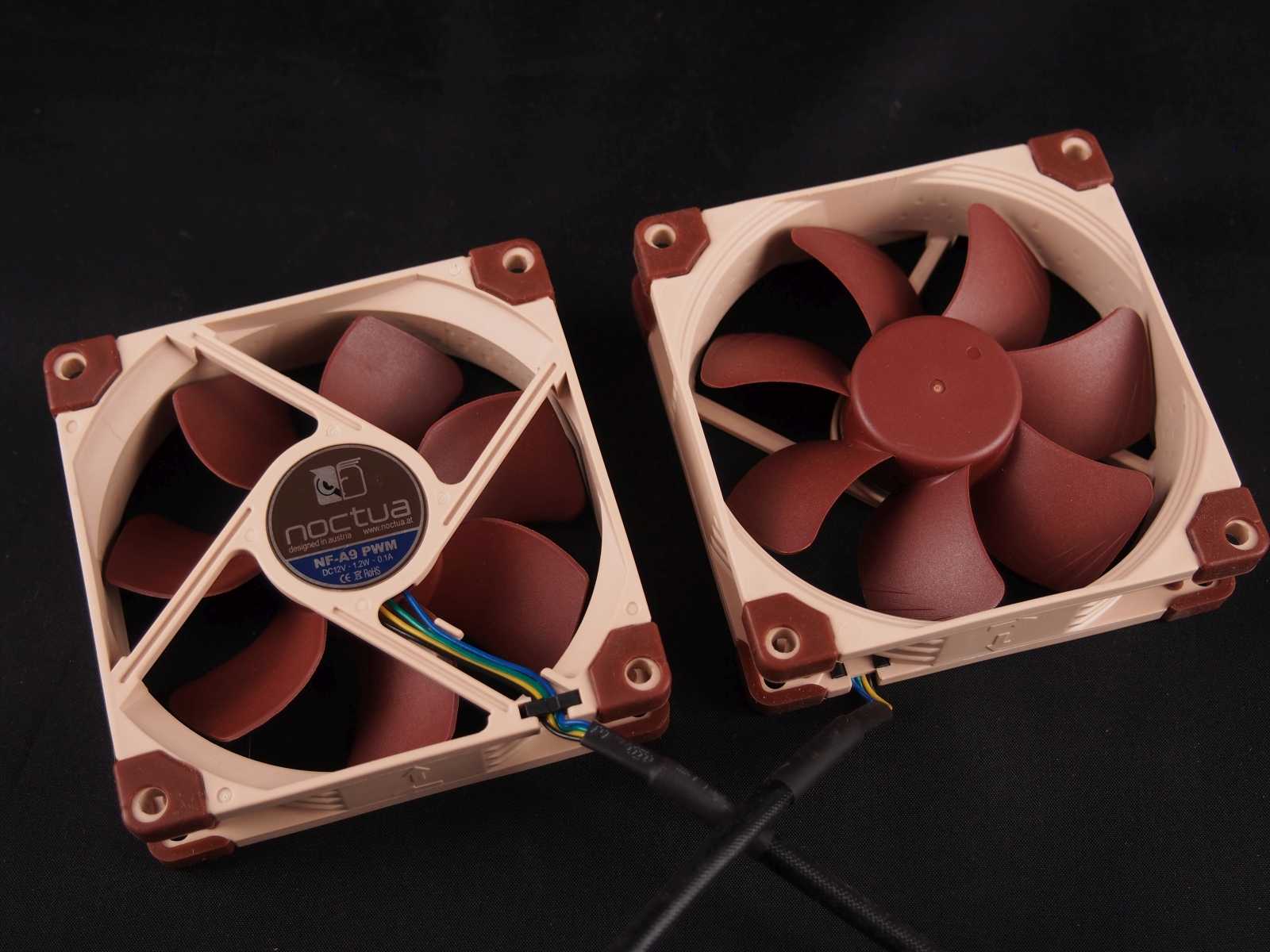 Для обдува радиатора NH-U9 TR4-SP3 используется пара 92 мм вентиляторов Noctua NF-A9 PWM, работающих на вдув и выдув. Обе вертушки могут работать в диапазоне 400-2000 об/мин, обеспечивая воздушный поток 16-78.9 CFM. При этом уровень шума данных вентиляторовпо заявлениям производителя не превышает 22.8 дБ.