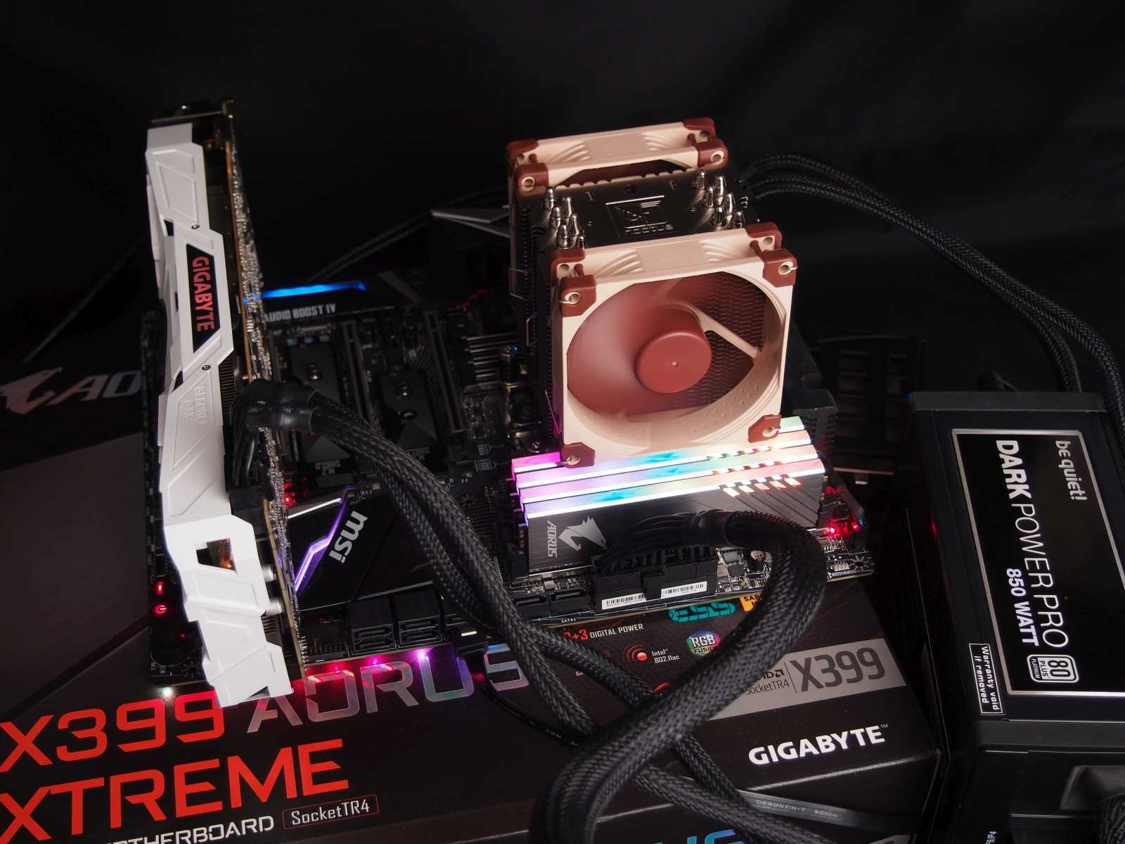 Во включенном состоянии система с NH-U9 TR4-SP3 принимает следующий вид. Как видно по фото, кулер никак не мешает установке видеокарты в первый слот PCI-E. Поэтому пользоваться смещением радиатора относительно сокета на NH-U9 TR4-SP3 нет никакой потребности.