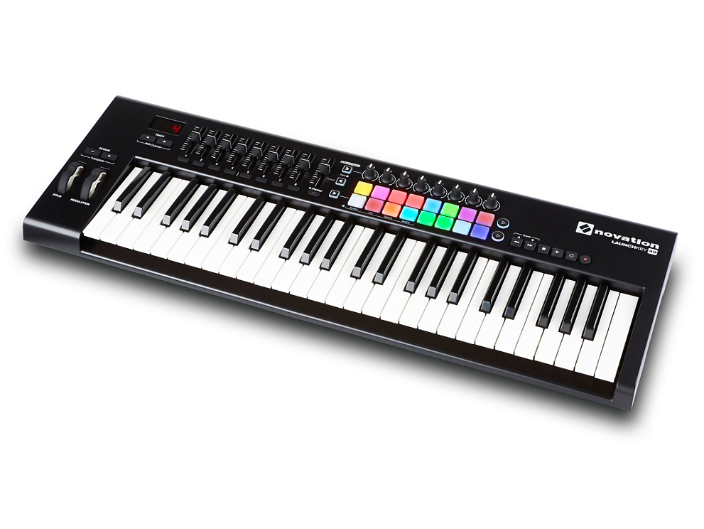 Миди клавиатура Novation Launchkey MK3 отзывы поставляется в четырех размерах — 25, 37, 49 и 61 клавиш. 37-клавишная модель, является новой и необычной конфигурацией в мире MIDI. Novation говорит, что это ответ на запросы пользователей на что-то между 25 и 49 клавишами, которые все еще сохраняют полноразмерные ключи, оставаясь при этом очень портативными. Чтобы добиться этого, они переместили колеса питча и модуляции, чтобы учесть дополнительные клавиши. Две старшие модели имеют 8 фейдеров, которых нет на двух младших моделях, но в остальном блоки функционально идентичны.