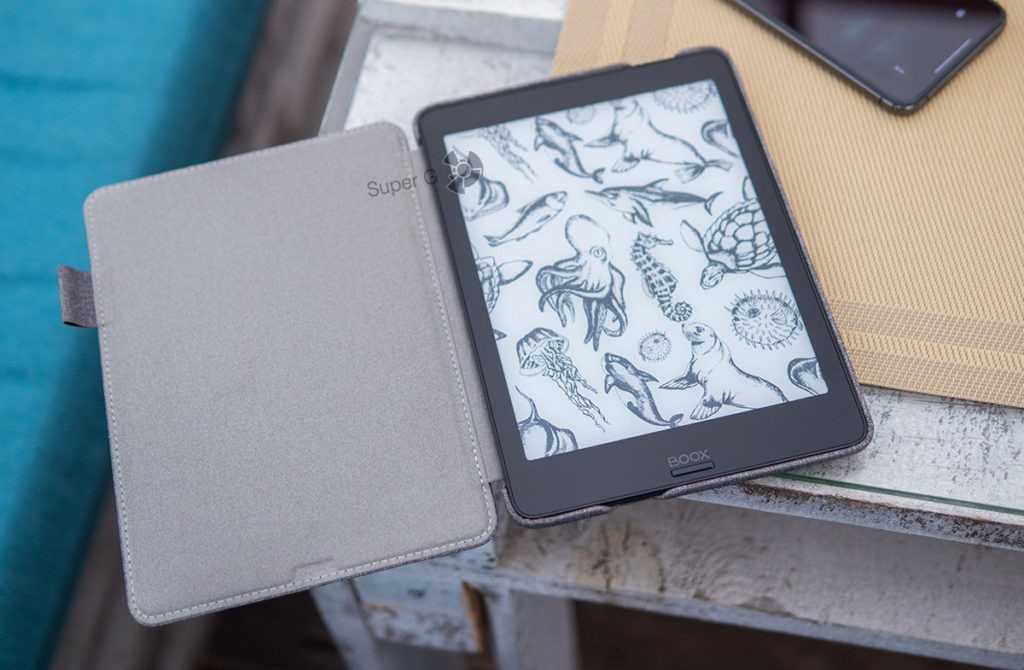 Фирменный чехол, как и всегда у ONYX BOOX, заслуживает отдельного внимания. Он выполнен из качественного практичного материала сверху и покрыт мягким подобием замши внутри. Кроме защиты экрана и корпуса, чехол выполняет и энергосберегающую функцию. Он при закрытии переводит книгу в спящий режим.