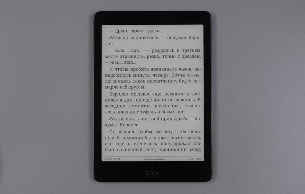 Ещё одна важная особенность такого экрана – полная безопасность для глаз. Чего нельзя сказать об экранах смартфонов или планшетов. Подсветка на дисплеях E-Ink Carta Plus реализована таким образом, чтобы освещать рабочую плоскость максимально естественно (сбоку, а не снизу). К тому же, ребята из ONYX BOOX придумали такую «фишку», которая называется SNOW Field. Она снижает количество артефактов при перелистывании страниц и убирает мерцание при обновлении экрана, максимально приближая изображение на электронном ридере к классической бумажной книге.