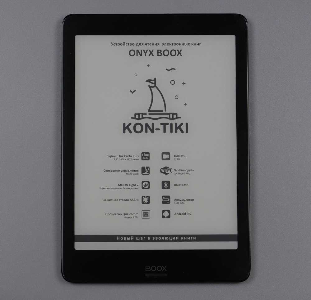 ONYX BOOX KON-TIKI — однозначно лучшая читалка, которую я когда-либо держал в руках. Функционал зашкаливает, внутри смартфонный процессор (Snapdragon 625), много памяти и современная система с фирменным магазином или стандартным от Google. Можно делать почти всё тоже самое, что и на смартфоне. Только на читалке!