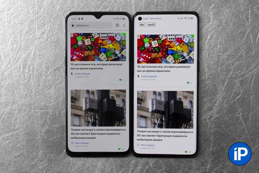 Слева Reno3, справа Reno3 Pro, яркость максимальная. В жизни разница заметна меньше