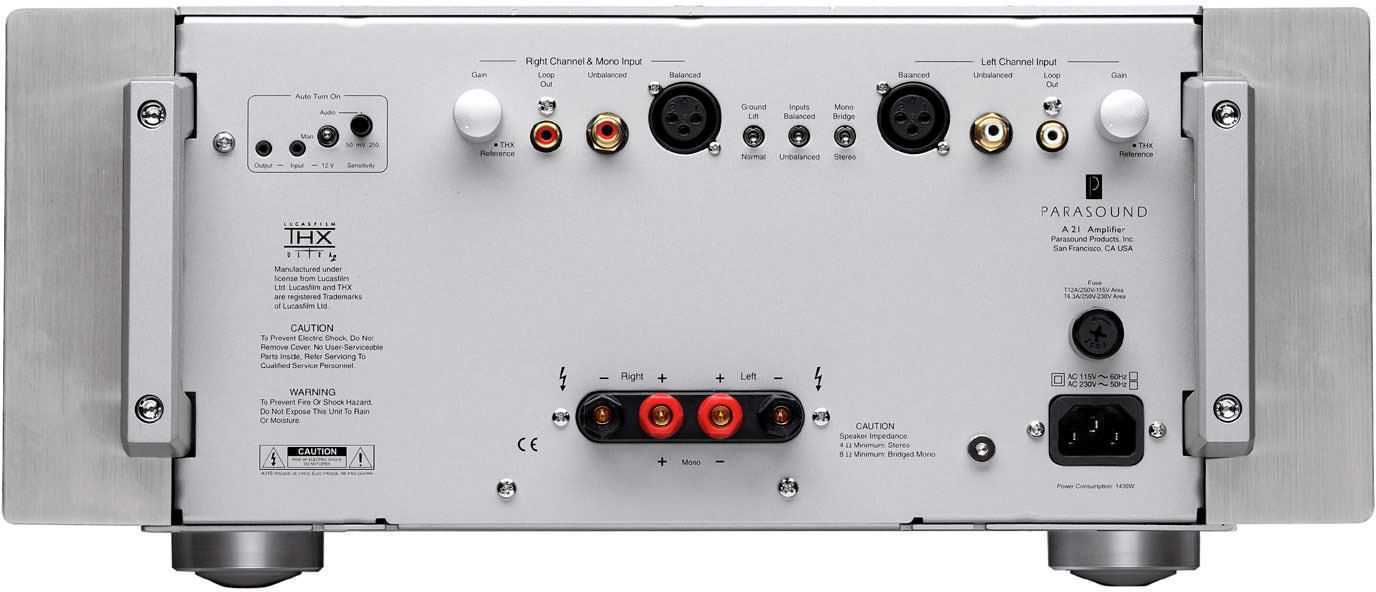 Тот факт, что A21 сертифицирован по стандарту THX Ultra 2, перестаёт удивлять, если вспомнить, что усилители Parasound используются в студии Lucasfilm, создавшей этот стандарт.