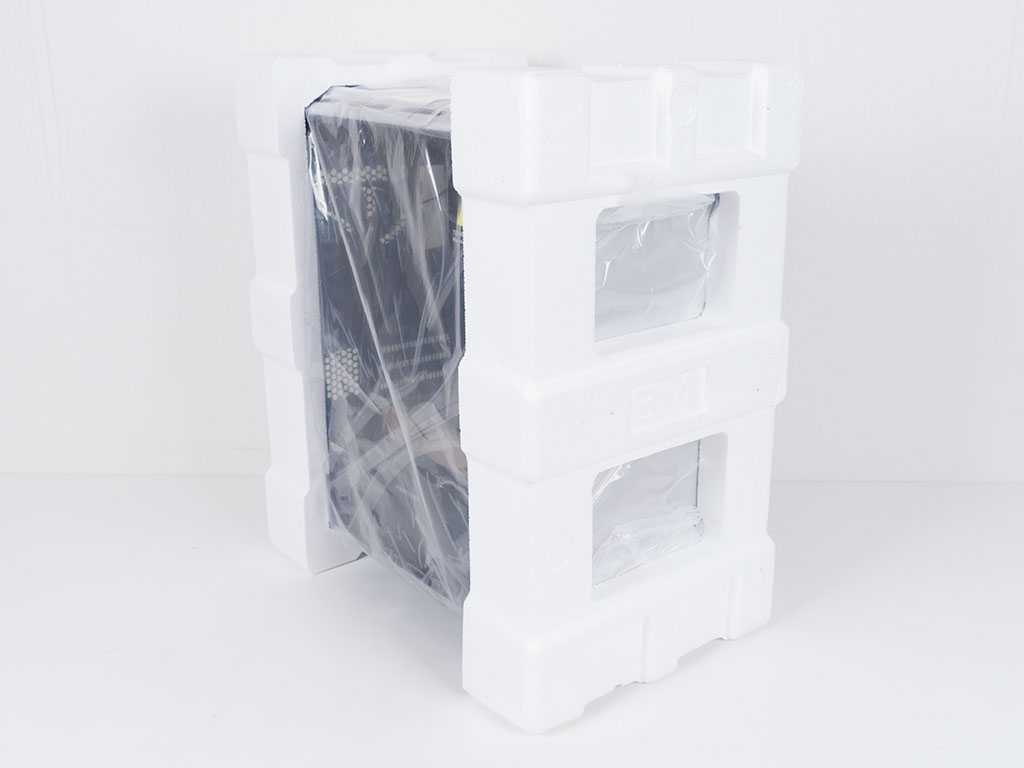 Две толстые прокладки из пенопласта удерживают корпус на месте и сохраняют его при транспортировке, а прозрачный пластиковый пакет защищает устройство от отпечатков пальцев и царапин.