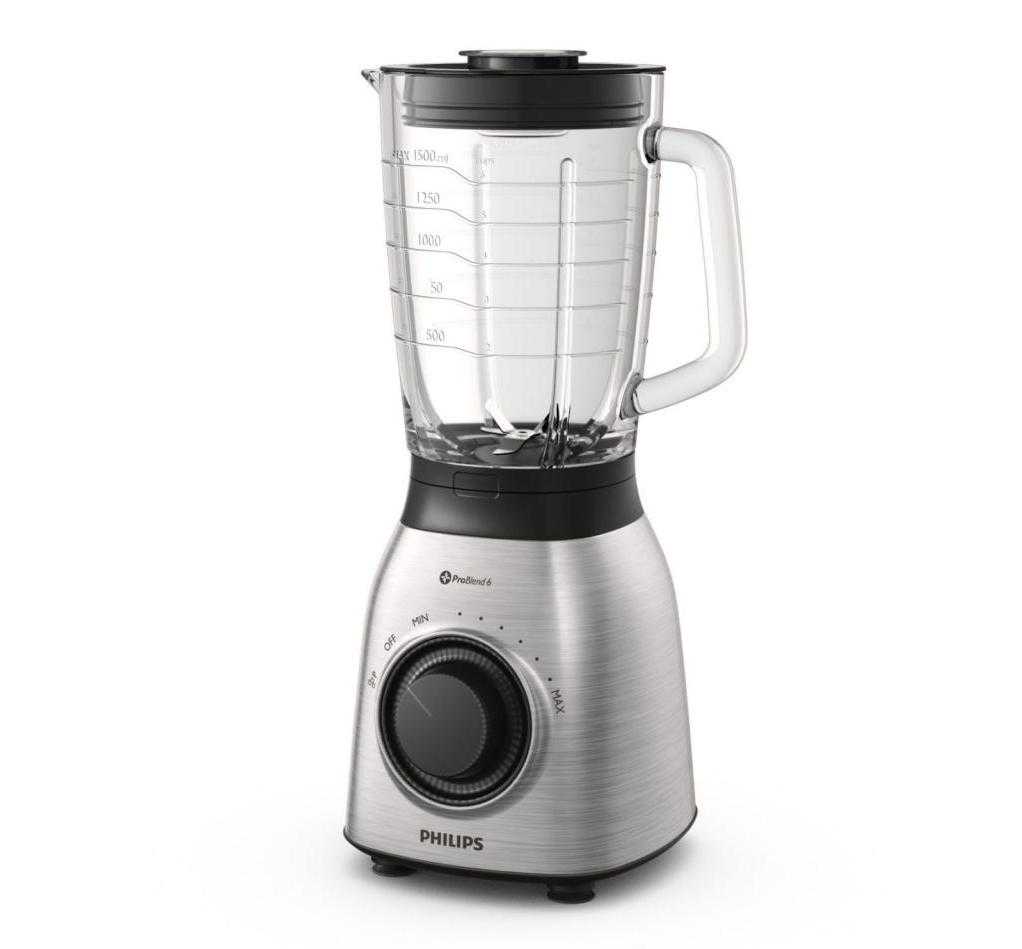Стационарный блендер Philips HR3556 может похвастаться специальной технологией ProBlend 6. Благодаря этому устройство моментально взбивает крем, измельчает любую пищу и даже колит кусочки льда. Используя режим пульсации всегда можно отрегулировать степень измельчения ингредиентов и время работы прибора.