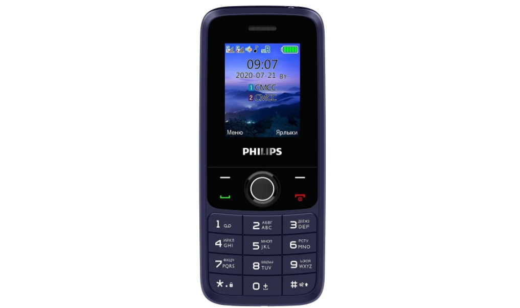 Цена – от 950 рублей. Кнопочные телефоны Philips в своем большинстве стоят дороже, нежели китайские конкуренты. Это объясняется высоким качеством и долгим сроком службы. Модель E106 сложно назвать дорогой, ведь ее ценник находится около тысячи рублей. Аппарат является самой простой звонилкой с поддержкой двух сим карт. Подойдет для пожилых людей или в качестве запасного варианта на работу, где есть опасность разбить дорогой смартфон. Устройство имеет встроенный плеер и поддерживает карту памяти до 16 Гб, этого хватит чтобы загрузить на девайс большое количество музыки и слушать ее на протяжении всего дня и даже больше.