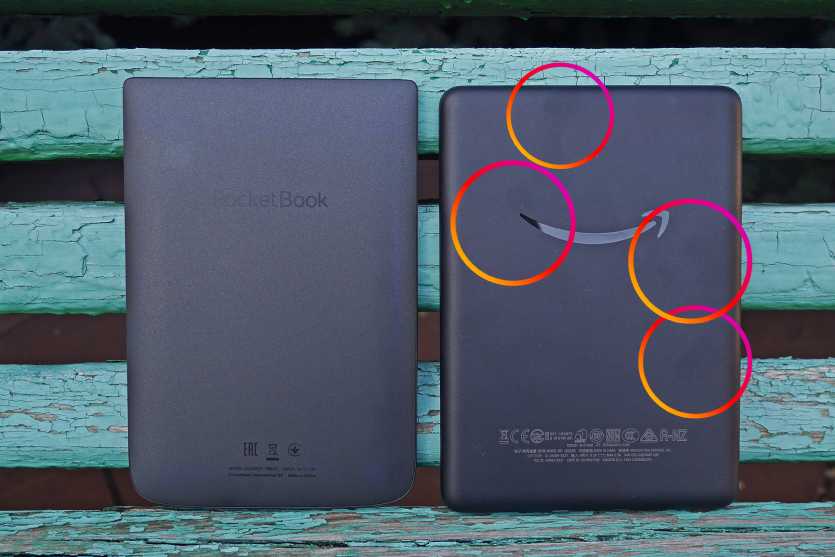 Прорезиненный бархатистый у PocketBook 616 и твердый матовый у Kindle 9. Небольшое отступление: на улице сейчас июнь, жара под 30 градусов; руки влажные… И вот этими-то руками я и брал ридеры во время тестирования. Как ни странно, на корпусе PocketBook следов от пальцев не оставалось.