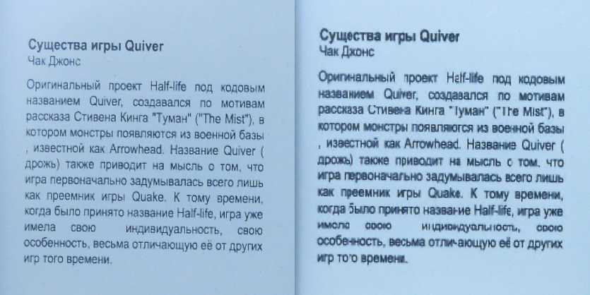 Верстка издания содержит очень мелкий текст. Вот его-то отображение я оценил на обоих экранах – и сфотографировал при одинаковом масштабе.