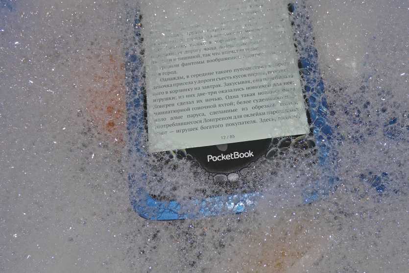 Вот, скажем, вполне удачная попытка использования PocketBook 641 Aqua 2 в качестве игрушки при купании ребенка. Ребенок был доволен, а с ридером ничего не случилось – он работает как и раньше.