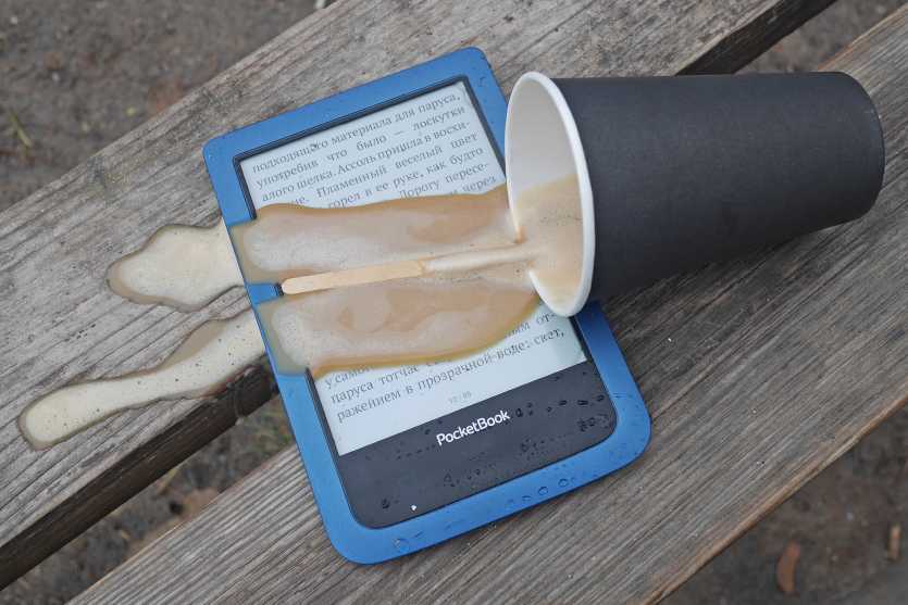 Конечно, я не смог удержаться и устроил своему новенькому «водоплавающему» покетбуку несколько испытаний. Как видите, ни пролитый на ридер кофе, ни последующий «душ», ни даже полное погружение в воду никоим образом не сказались на работоспособности ридера: