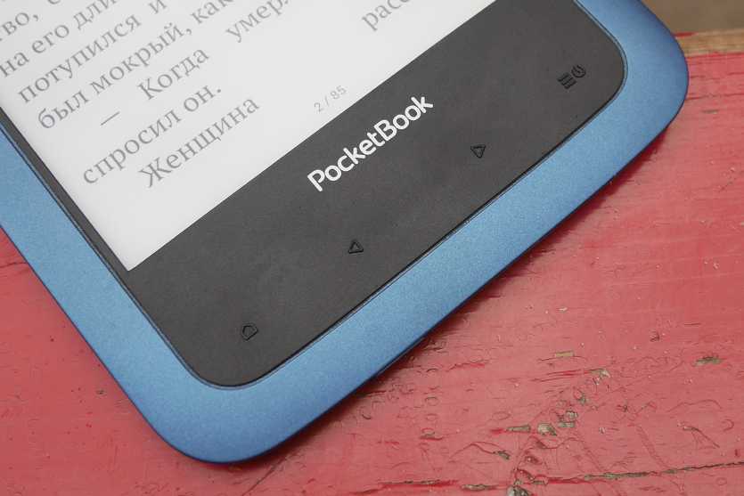 Панель со стандартными для покетбуков четырьмя управляющими клавишами тоже намекает на защищённость устройства. В обычных моделях PocketBook кнопки раздельные, то есть каждая выполнена из своего кусочка пластика, а в PocketBook 641 Aqua 2 используется одна сплошная панель, в которую также встроен экран. Это сделано для того, чтобы в щели между клавишами не просачивалась пыль и не затекала вода. Да, для нажатия на кнопки в PocketBook 641 Aqua 2 требуется прикладывать чуть большее усилие, чем в случае других, незащищённых моделей компании. Но именно что чуть – сильного дискомфорта от этого не испытываешь.