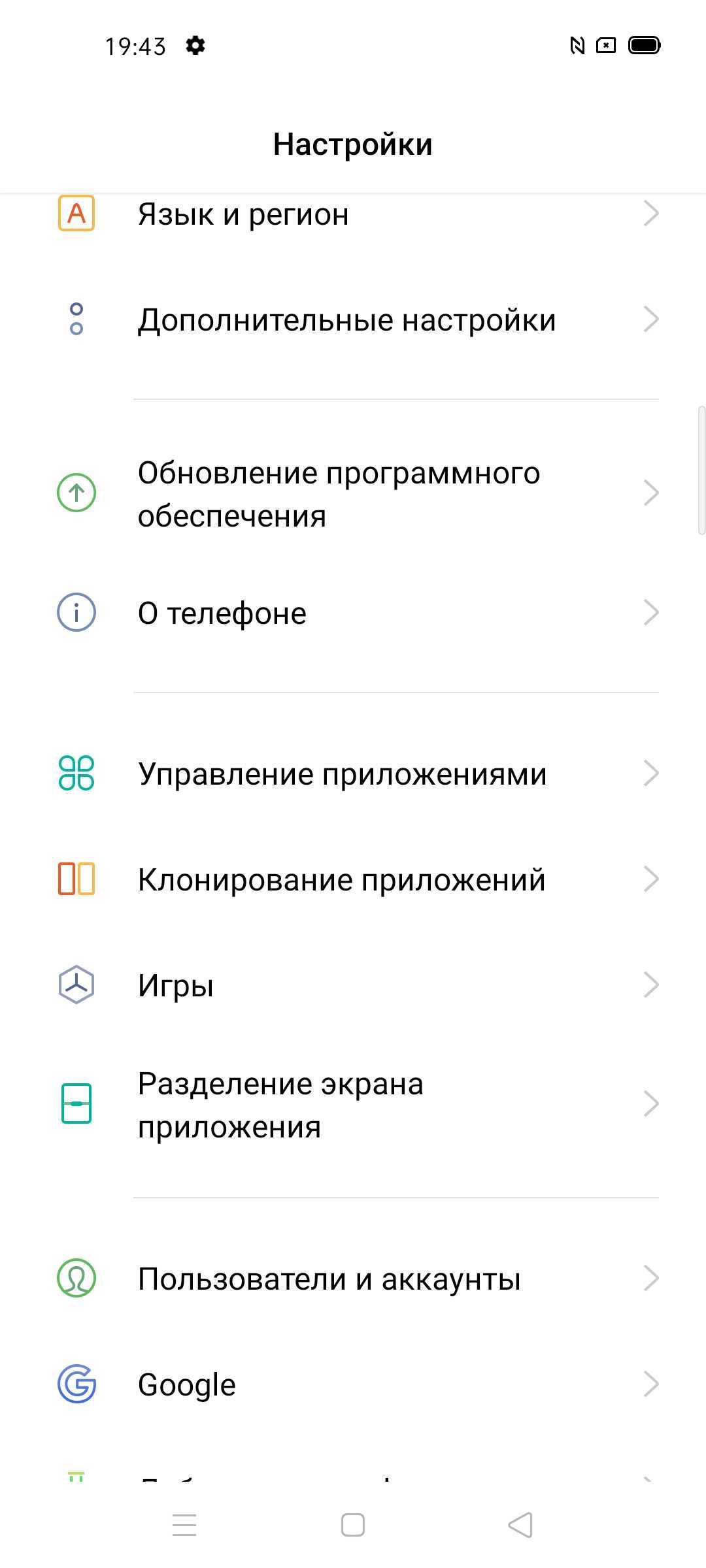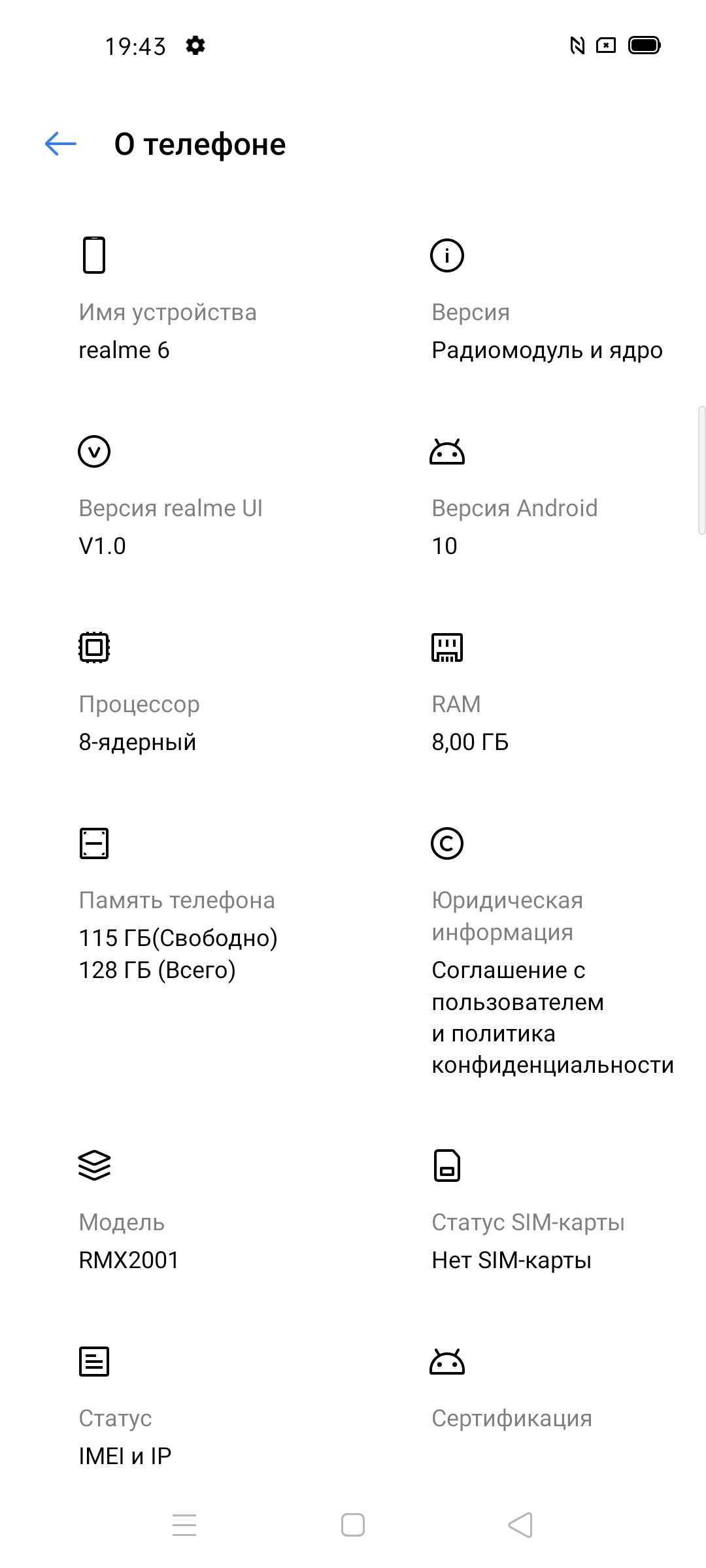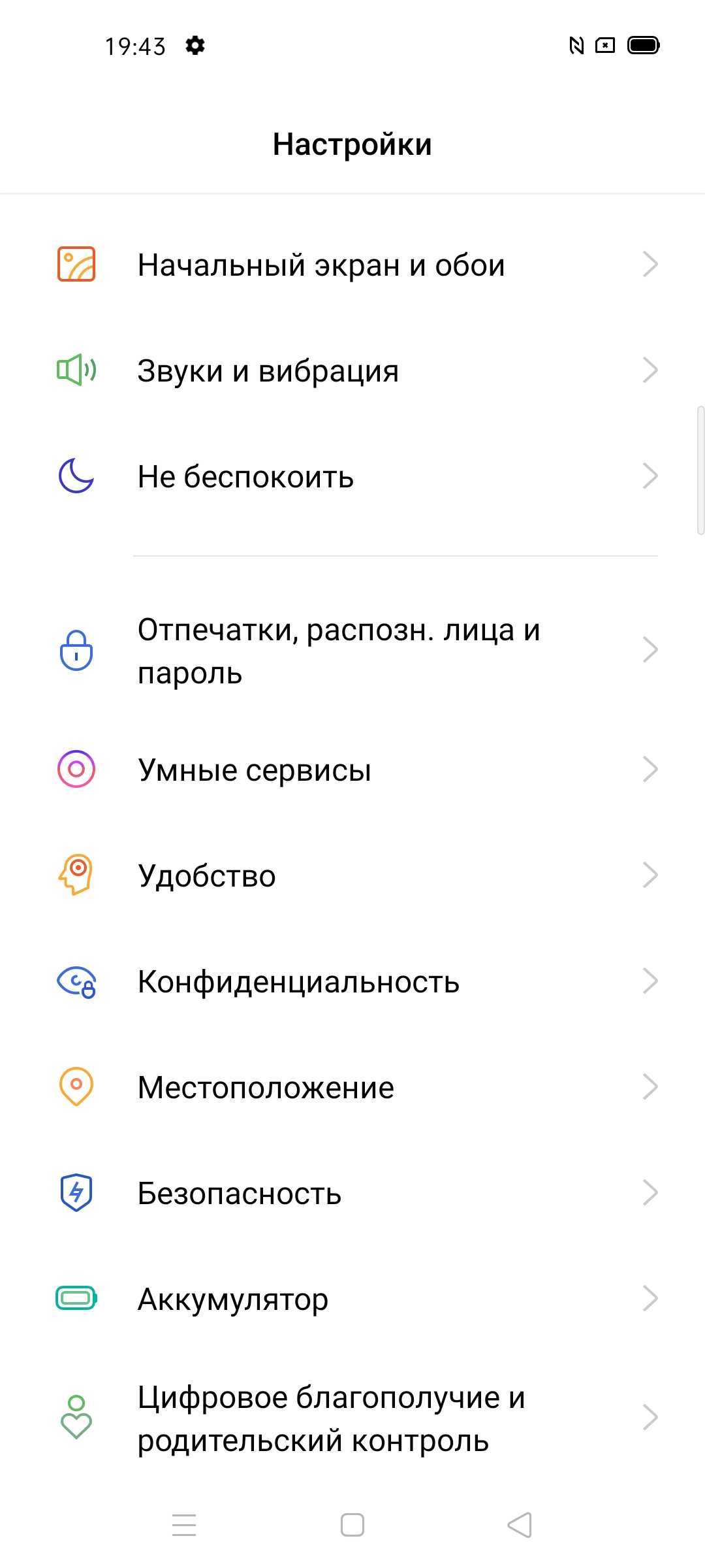 Работает realme 6 под управлением Android 10. Установлена фирменная оболочка realme UI. Интерфейс полностью изменен.