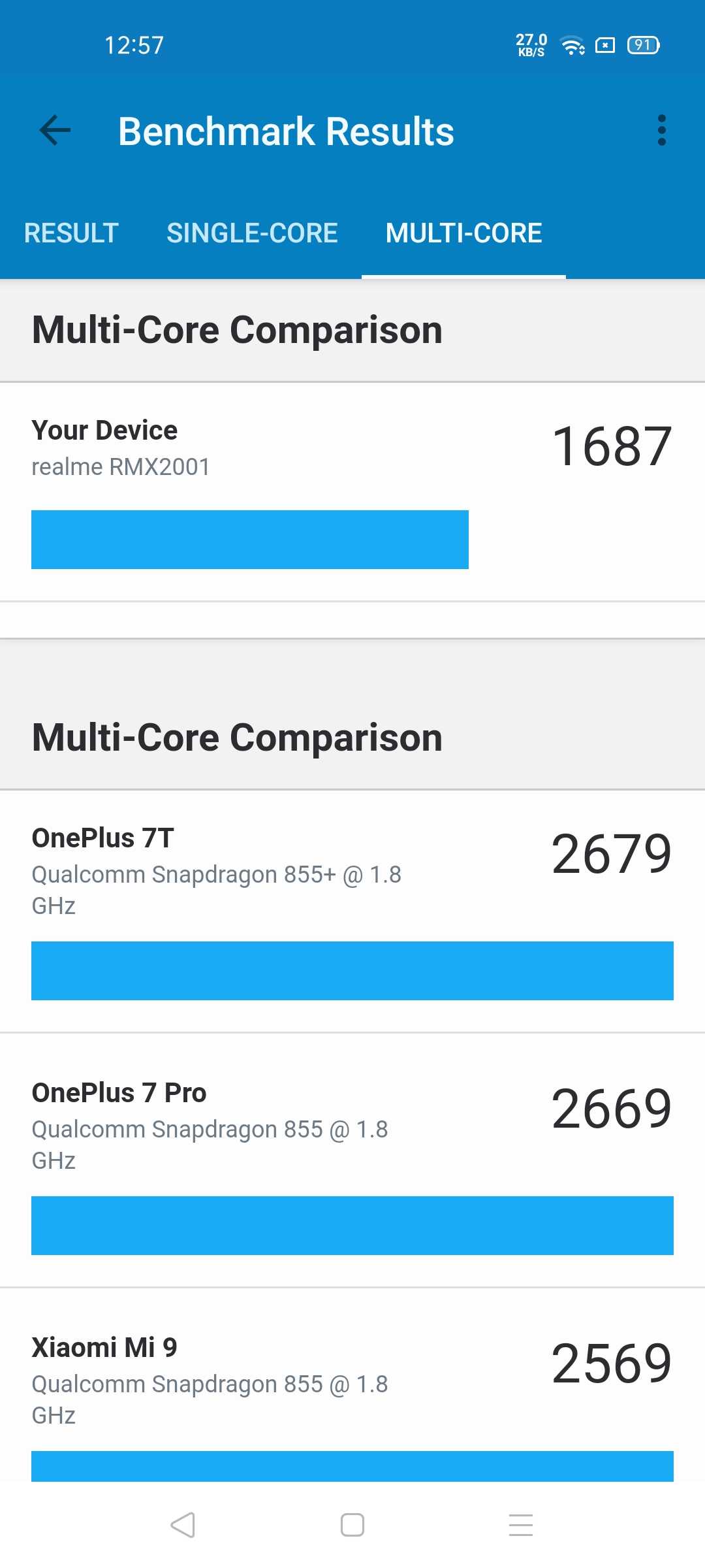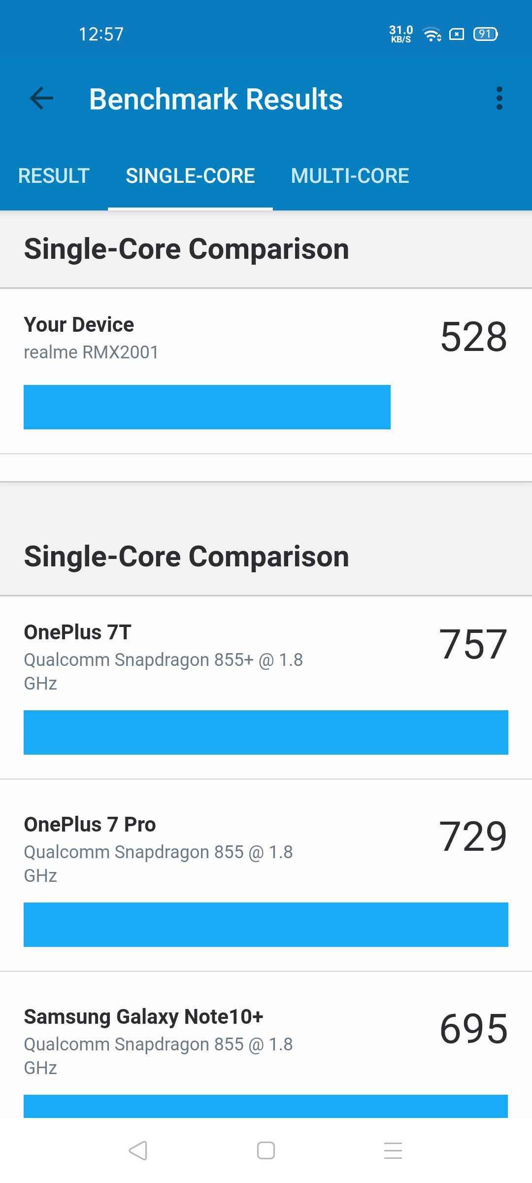 Ядра Cortex-A78 гарантируют высокую производительность в многоядерном режиме, что подтверждают тесты. В Geekbench 5 результат Q3 Pro составляет 707/2718 баллов, и сопоставимы со многим конкурентными смартфонами на Snapdragon 865.