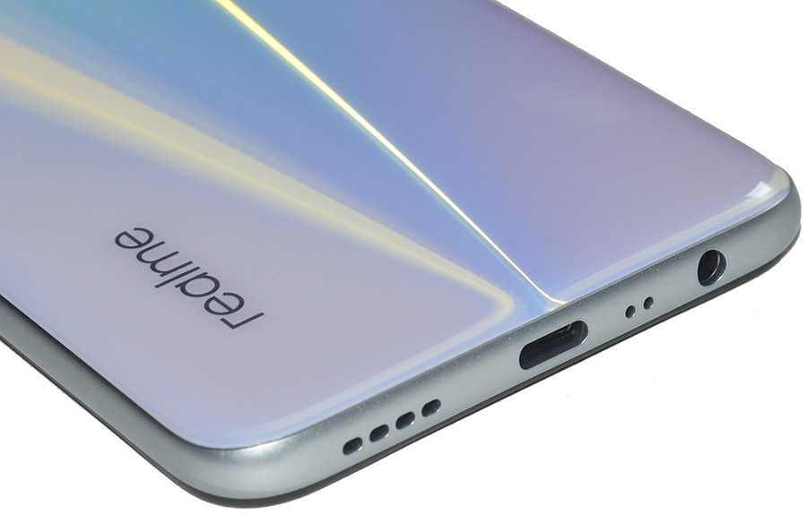 Рама по периметру окрашена в серебристый цвет и выглядит прямо как металлическая. Но увы — лишь выглядит, а по факту является пластиковой. С другой стороны — в этом сегменте металл производителями уже давненько не применяется, так что вменять Realme в вину данный факт мы, пожалуй, не будем.