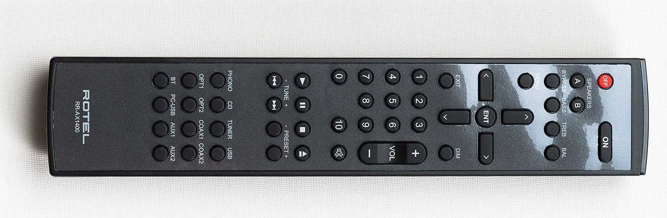 Управление доступно через лицевую панель, все, от громкости и переключения динамиков до выбора входа и регулировки тембра. Или есть пульт — либо он большой, либо кнопки с подсветкой слишком маленькие, либо и то, и другое. В любом случае, дисплей (в таком низком разрешении, как высокое разрешение встроенного ЦАП) сообщит вам, что именно к чему.