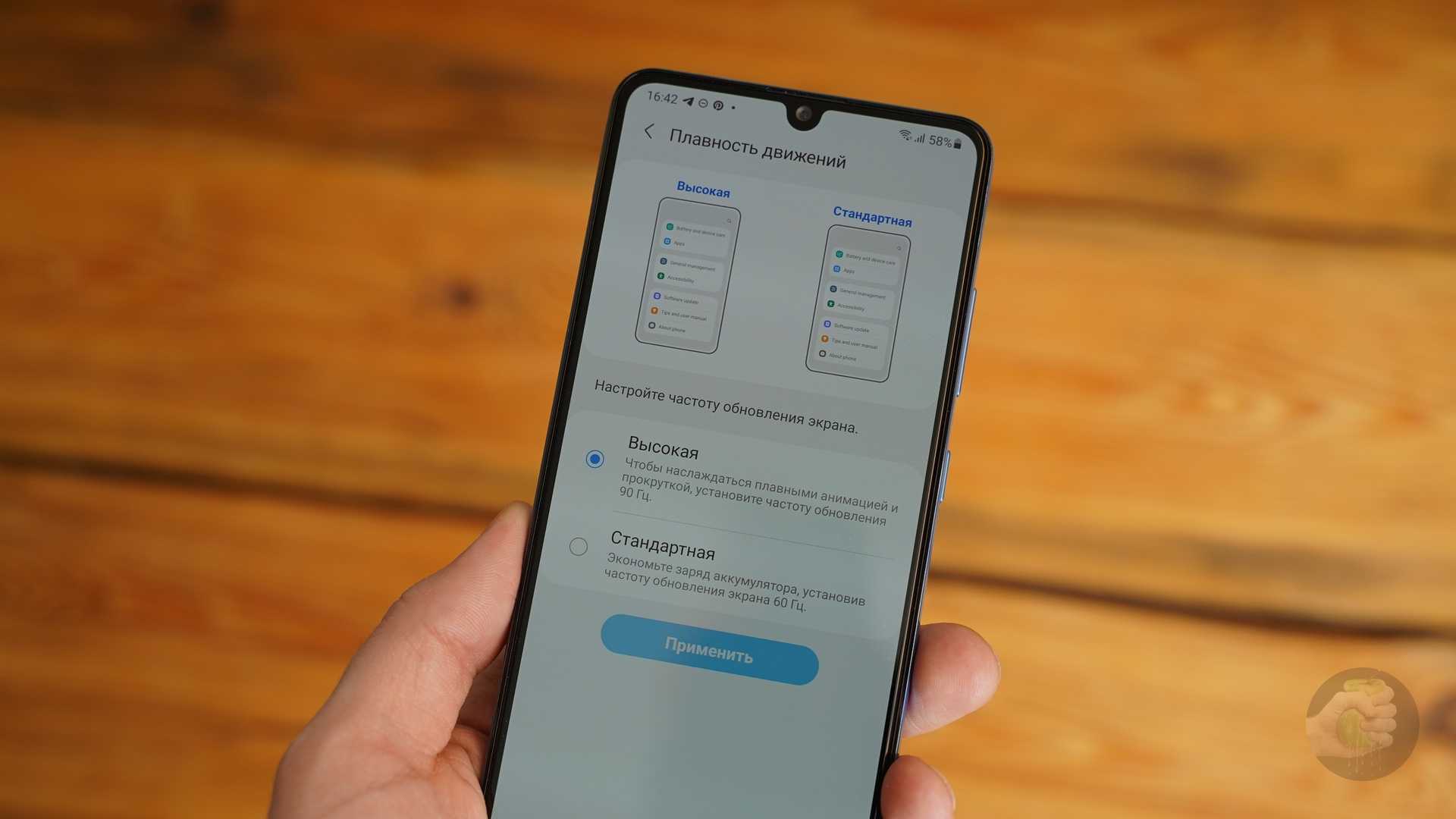 Частота обновления 90 Гц – самая начальная после 60 Гц, тем не менее плавность движений на экране заметна, поэтому жаловаться не на что. Кроме того, переход с 60 Гц на 90 Гц не сильно влияет на автономность работы. Есть лишь два варианта частоты: высокая (90 Гц) и стандартная (60 Гц), без умных или адаптивных режимов. По крайней мере, вы сможете насладиться 90 fps в некоторых играх, разумеется, если графический процессор Adreno 618 с этим справится.