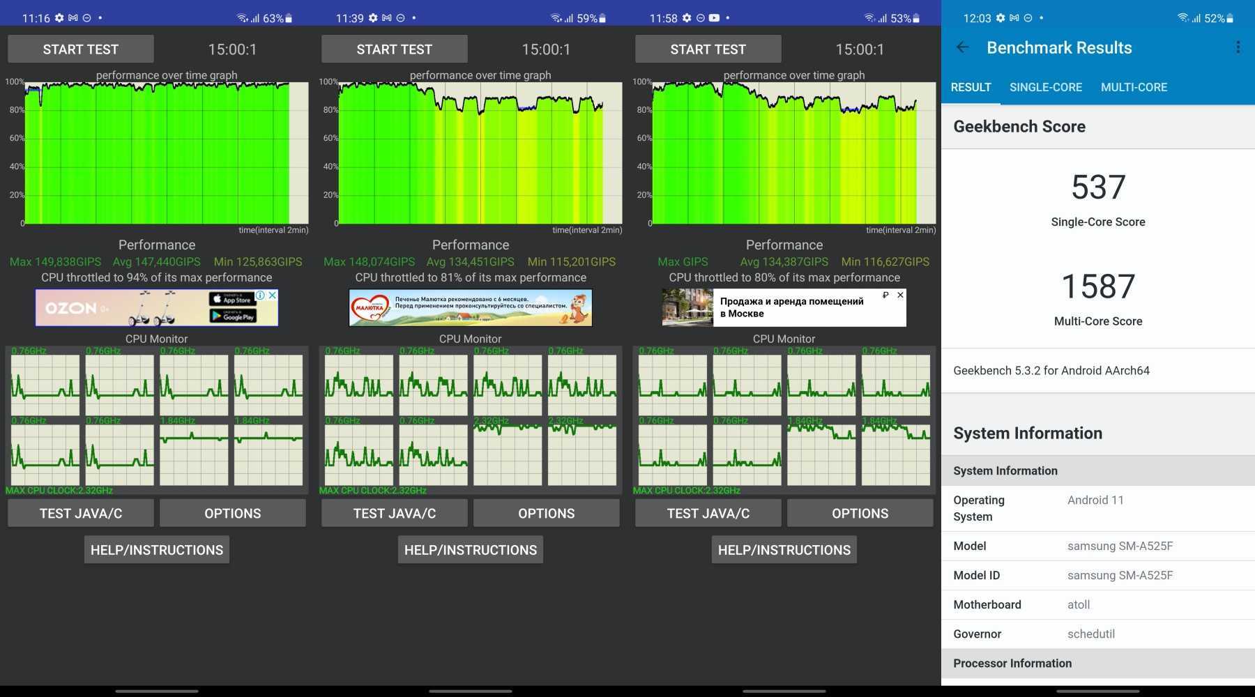 На GeekBench я получил 535 баллов в одноядерном и 1527 в многоядерном режимах. Это неплохо. Хотя очередной раз стоит сказать, что синтетические тесты не отражают полную картину.