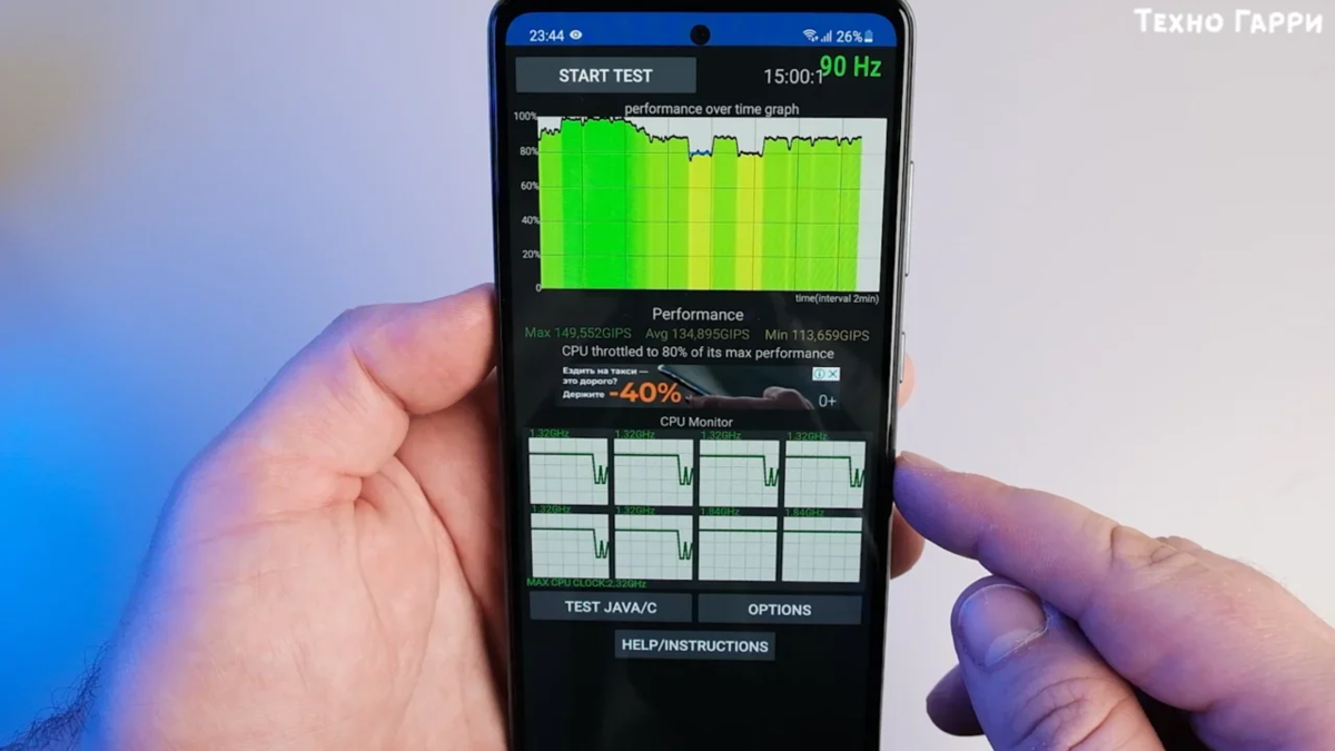 Теперь переходим к самому вкусному — к частоте обновления дисплея. Как и ожидалось она здесь действительно повышенная — 90 Гц, вместо 60 Гц на прошлогодних смартфонах серии A.