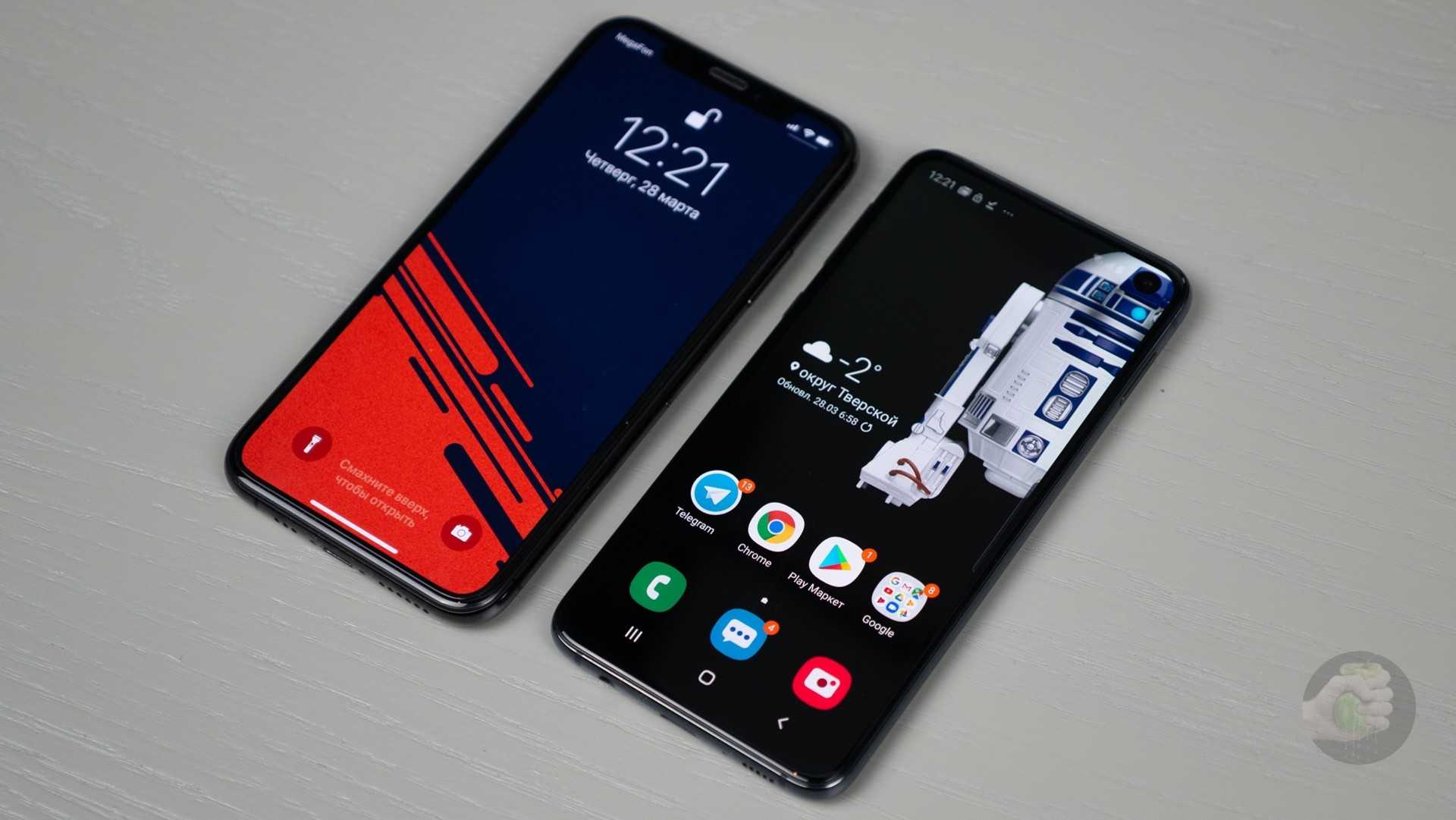 Такое ощущение, что Galaxy S10e делали в качестве ответа на iPhone X или XS. Размеры телефонов почти полностью совпадают, разве что Samsung получился легче.