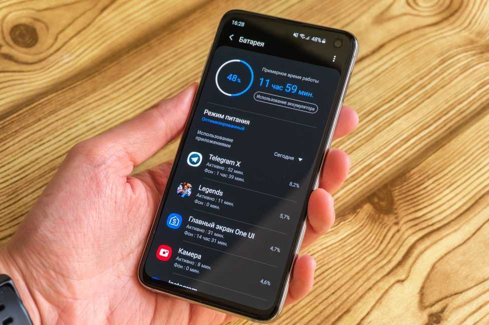Тестовый образец в фоне постоянно использует GPS. Мой юзкейс включает: мессенджеры, соцсети, прослушивание музыки, серфинг в сети, но без игр и с попеременным Wi-Fi/LTE. Из других влияющих на время работы факторов — с 8:00 до 20:00 работала функция Always On Display. В конечном итоге получается от 4 до 5 часов активности экрана. В общем — довольно-таки типичный средний показатель.