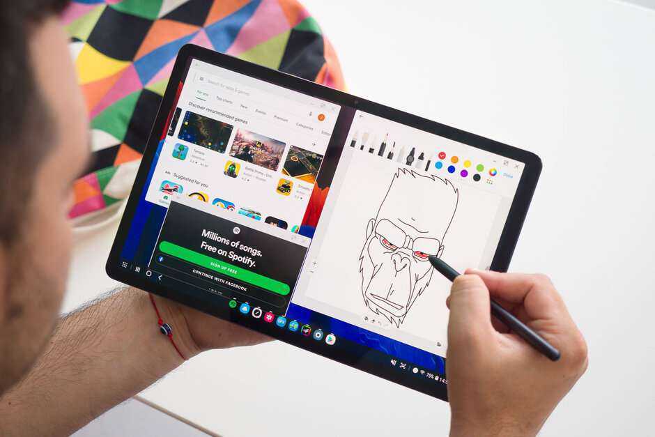 С чипсетом Snapdragon 865 + на палубе Tab — не что иное, как мощный генератор. Никогда не возникает ощущения, что он изо всех сил пытается идти в ногу с темпом пользователя, и всегда есть резерв производительности. В сочетании с дисплеем с высокой частотой обновления и оптимизированным интерфейсом One UI, этот планшет на дрожжах превосходит своих предшественников с точки зрения воспринимаемой оперативности. Это, пожалуй, самый быстрый Android-планшет, который я когда-либо использовал, и, если не принимать во внимание синтетические тесты, практически нет заметной разницы в производительности по сравнению с последним iPad Pro. Объем оперативной памяти составляет 6 или 8 ГБ. В наши дни у нас есть телефоны с 12 ГБ оперативной памяти, но это не имеет большого значения, если вы не многозадачны. Тем не менее, учитывая, что Tab S7 + имеет цену выше средней, 8 ГБ ОЗУ в базовой версии и 12 ГБ были бы гораздо более привлекательным выбором для опытных пользователей