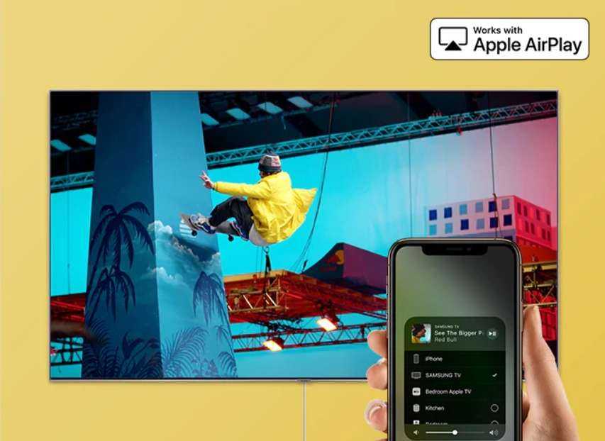 Airplay 2. С помощью Airplay 2 вы впервые сможете управлять контентом прямо с девайсов Apple и сразу на большой экран любимого Samsung QLED ТВ. Проигрывание видеороликов, музыки, фотографий и не только — легко.