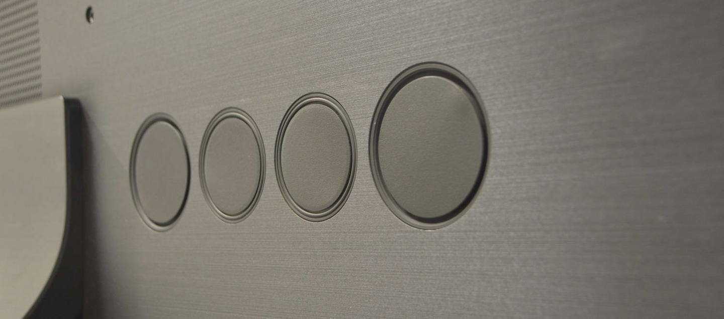 И еще о дизайне. Из-за фактически отсутствующей рамки по периметру изображения у висящего на стене телевизора от корпуса видны только торцы, выполненные из шлифованного металла с перфорацией по всей площади — то есть и сверху, и снизу, и по бокам. Выглядит и воспринимается это, в первую очередь, как своего рода художественное решение, но на деле без него просто никак — ведь за экраном больше тысячи очень ярких светодиодов и вся электроника.
