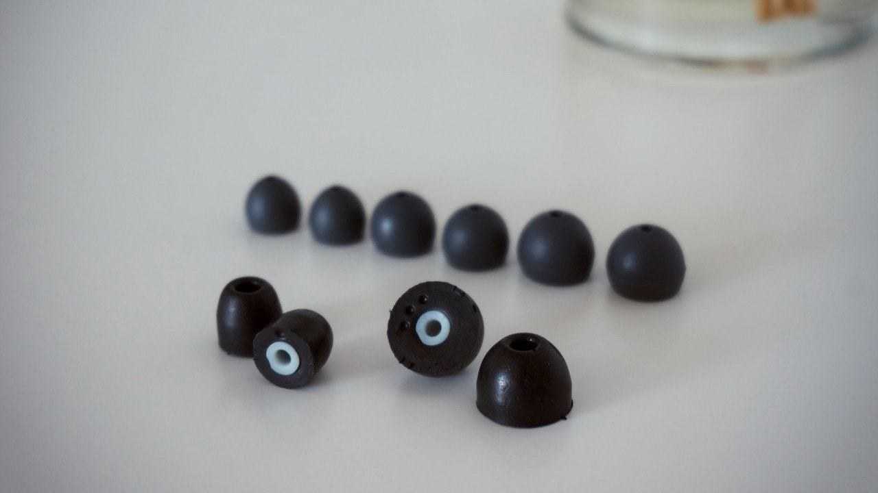 Хотя, учитывая размер устройства, это совсем не важно: они прячутся в ухе и не бросаются в глаза. А ещё наушники очень лёгкие! Ну и традиционно для Shure богатый комплект, куча самых разных насадок — есть и обычный силикон, и пена