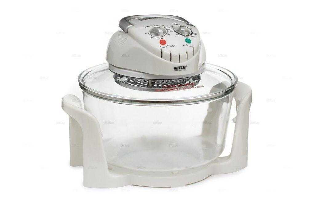| VS 440 | Мощность 1300 ватт.Таймер на 60 мин.Механическое управление.Вместимость колбы 12 л.Разогрев до 250 градусов.Съемная крышка.Настройка температуры.Галогенный термоэлемент.Вес 5,75 кг. | Минимальная и максимальная подставки.Увеличительное кольцо.Щипцы-ухваты.6 шампуров.Сковорода.Поверхность для жарки.Форма для яиц. | Емкость аэрогриля для готовки сделана из жаростойкого стекла. С увеличительным кольцом ее объем достигает 17 литров. Экономит до 80% электроэнергии по сравнению со стандартными кухонными печами. |