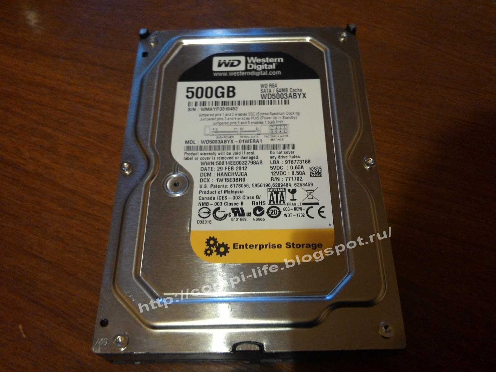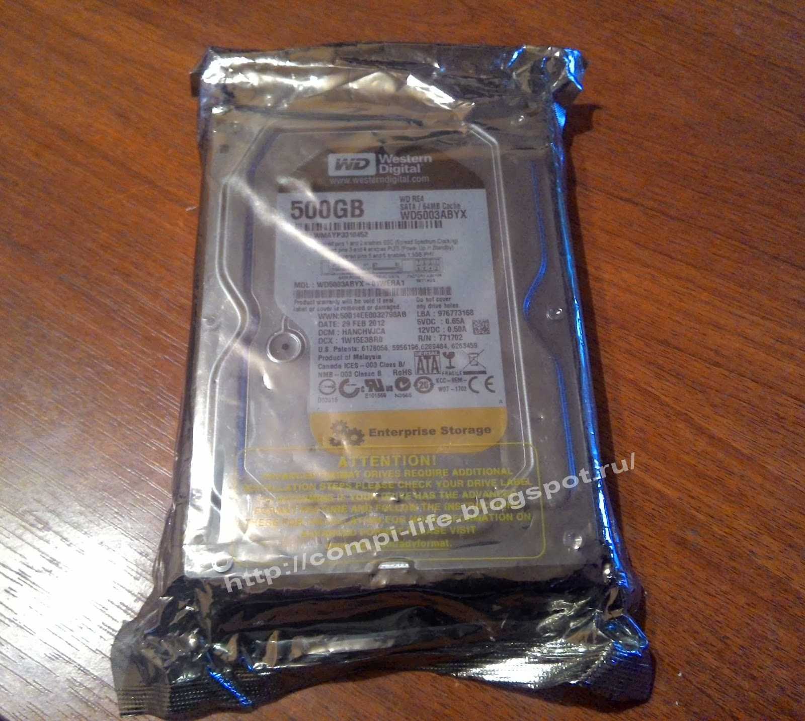 Почему же я решил купить именно этот диск? Как я уже упоминал выше, диск Western Digital WD5003ABYX рассчитан на работу в серверах, и имеет повышенный уровень кэша, его тут 64 Мб. По идеи, это должно положительно сказываться на быстродействии диска.