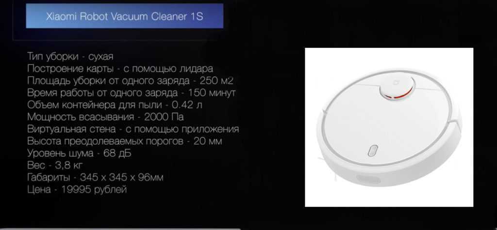 Технические характеристики Xiaomi Robot Vacuum Cleaner 1S: