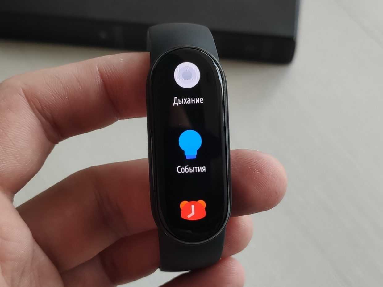 Из-за увеличения экрана, места для сенсорной кнопки под экраном на Mi Band 6 не нашлось. Теперь все управление осуществляется с помощью свайпов. Включается экран по поднятию руки, касанием экрана или свайпом по экрану вверх (настраивается в меню браслета).