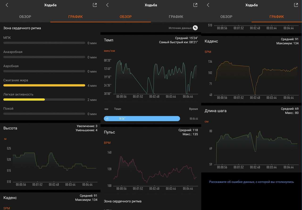 - Точность передачи GPS: Встроенного GPS здесь нет, браслет синхронизируется с телефоном и берет данные с него. Отмечу, что он быстро ловил GPS в моем телефоне, и передавал точные данные в Mi Fit после моих велосипедных поездок по городу.