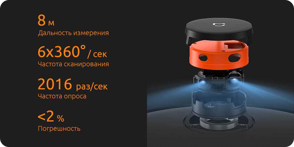 Новая система лазерной навигации LDS использует комплексные алгоритмы определения местоположения и кусочной аппроксимации. Чем быстрее вращается сенсор, тем выше точность, и тем дальше видит пылесос. В новом поколении карты составляются еще быстрее и точнее, а также увеличен диапазон сбора данных, чтобы пылесос быстрее обживался в новой обстановке.