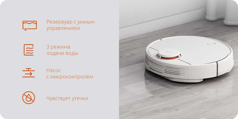 Умный пылесос Xiaomi не только имеет встроенный резервуар для воды, но и умную систему управления насосом, которая точно контролирует объем подачи. Система постоянно следит за водой и состоянием резервуара, а также предотвращает утечки, чтобы защитить деревянные полы от излишнего воздействия влаги.