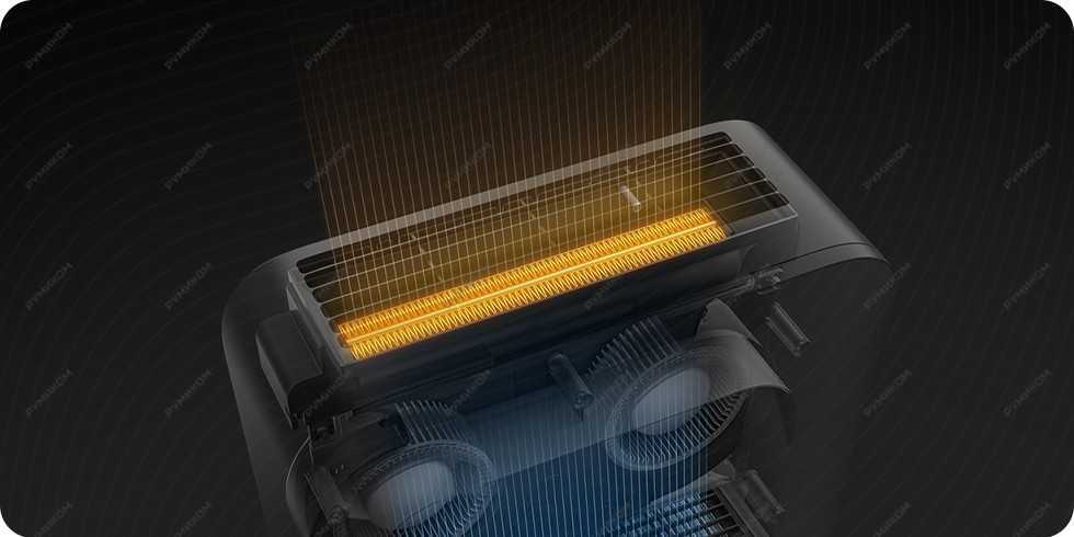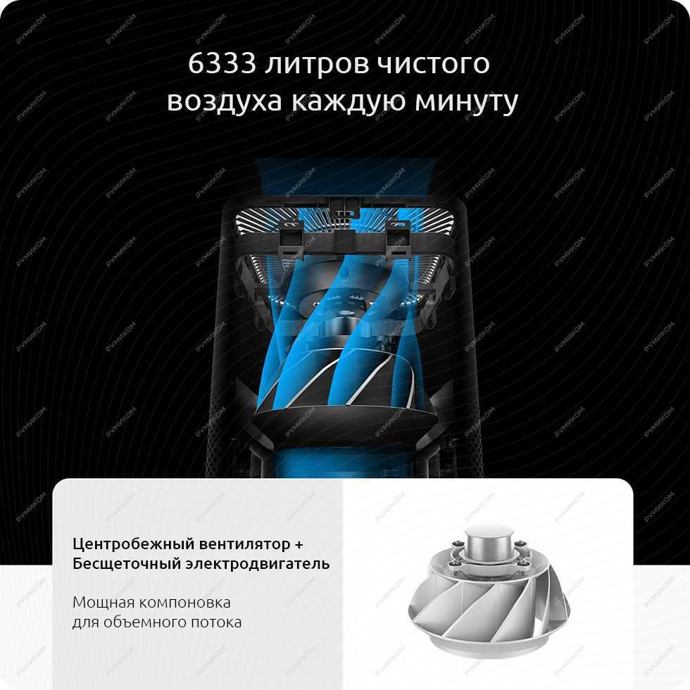 Оригинальная конструкция очистителя воздуха Xiaomi сочетает в себе целых два центробежных вентилятора, которые вращаются с высокой скоростью благодаря качественным бесщеточным электродвигателям, выдающим высокий крутящий момент. Кроме высокой производительности, их также отличает низкое энергопотребление.