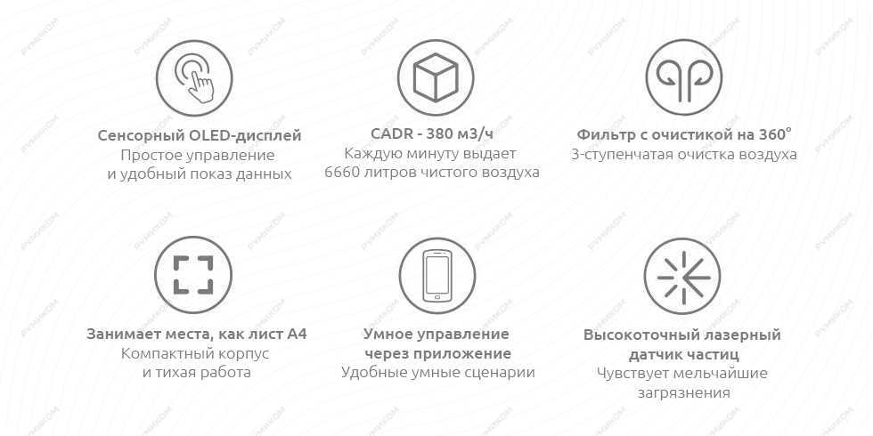 В очистителе Xiaomi воздух проходит через многоступенчатую систему фильтрации и нагнетается в помещение, чтобы создать внутри него область слегка повышенного давления. Человек такое изменение не заметит, но благодаря этому все загрязнения, формальдегид, частицы PM2.5, углекислый газ и другие вредные газы буквально выталкиваются наружу чистым воздухом, поддерживая чистоту и свежесть в помещении.