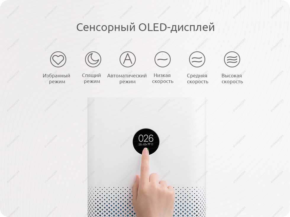 Теперь все кнопки управления и данные о работе очистителя воздуха расположены в одном месте и отображаются на OLED дисплее.